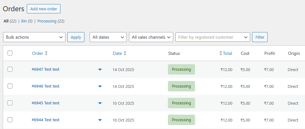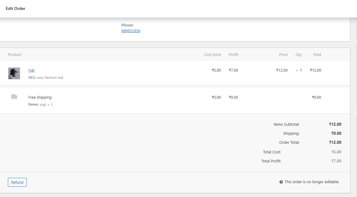 - View cost and profit data in order listings, order pages, and admin emails.