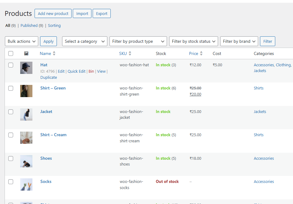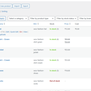 - Go to WooCommerce → Products, edit a product, and add the cost price.