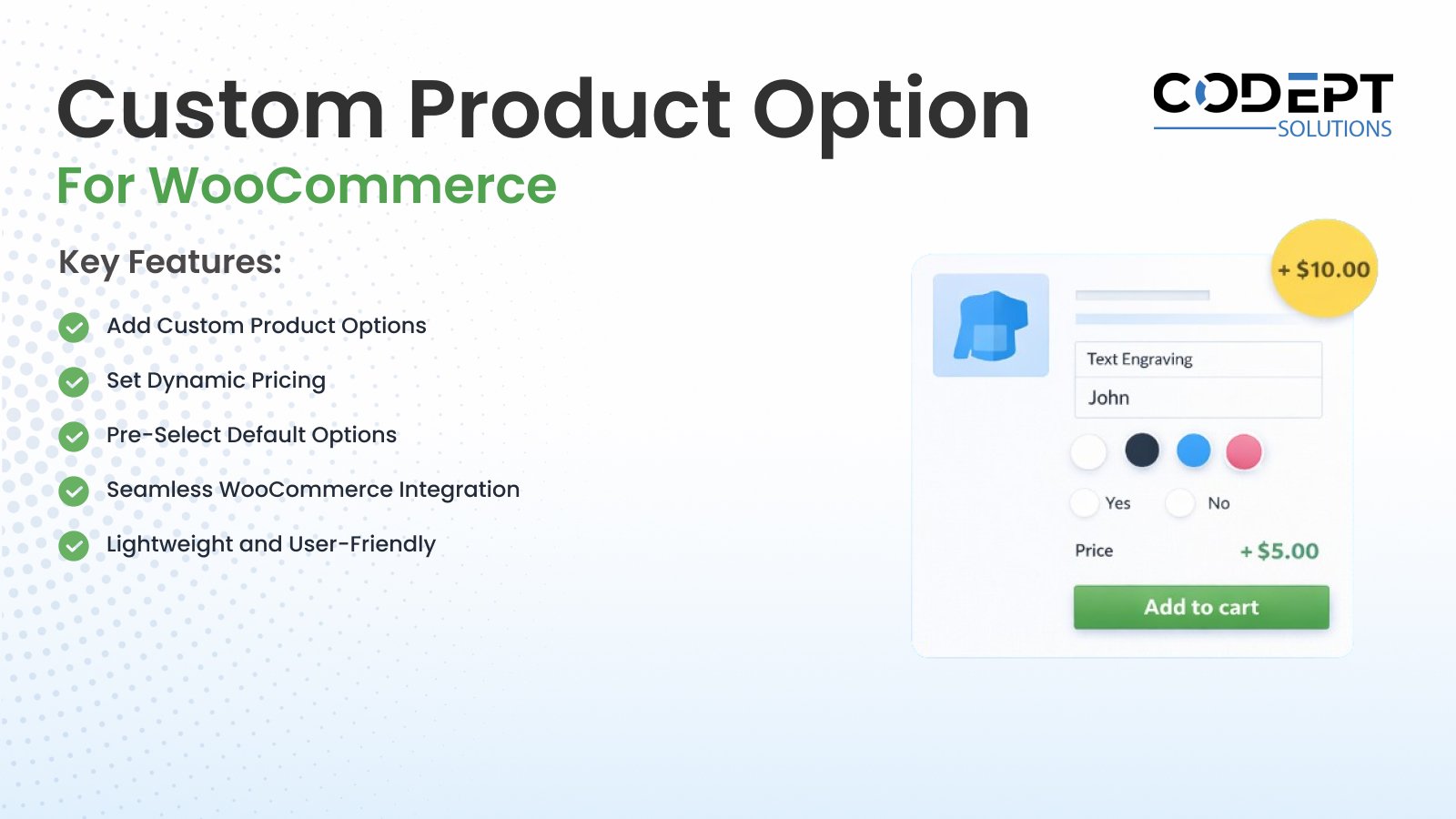 Take your WooCommerce store to the next level with the CS WooCommerce Custom Product Option plugin. This powerful and flexible plugin allows you to easily add a variety of customizable product options to your product pages, such as buttons, radio buttons, and dropdown menus. It’s designed to make it simple for your customers to select the options that best suit their preferences while ensuring that your pricing updates dynamically based on those selections.